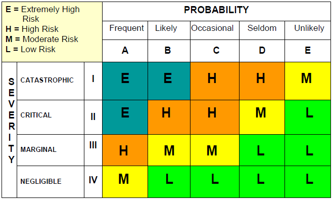 Fig. 31 Example of a risk matrix used by various engineering and military branches of the United States Army Corps of Engineers. Source: this USACE document (opens a PDF); general explanation can be found via Engineering Manual EM-385-1-1 (U.S. Army Corps of Engineers, 2014), or online at USACE Risk Management Center or Risk Analysis Gateway.#